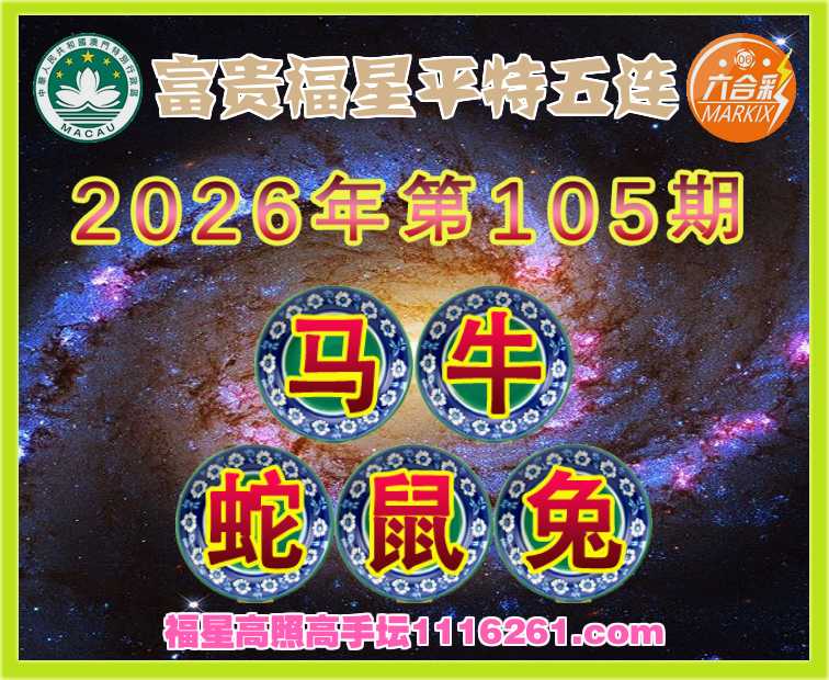 105期: ⌚《富贵福星》平特五连⌚【马牛蛇鼠兔】开:00准