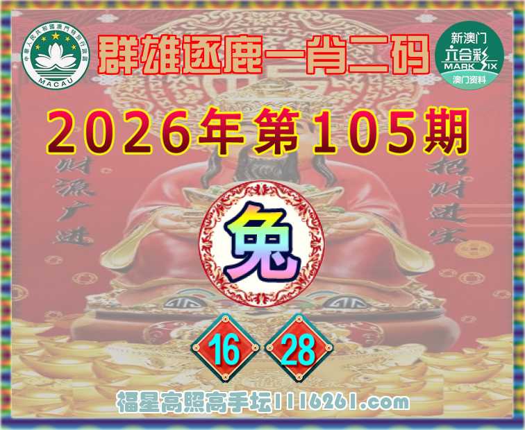 105期: 👛『群雄逐鹿』 👛一肖二码👛【兔】【16.28】开:00准